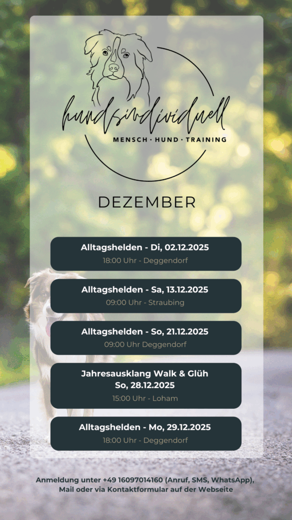 Hier findet ihr die aktuellen Termine für meine Hundetrainings in Straubing, Deggendorf und Umgebung.